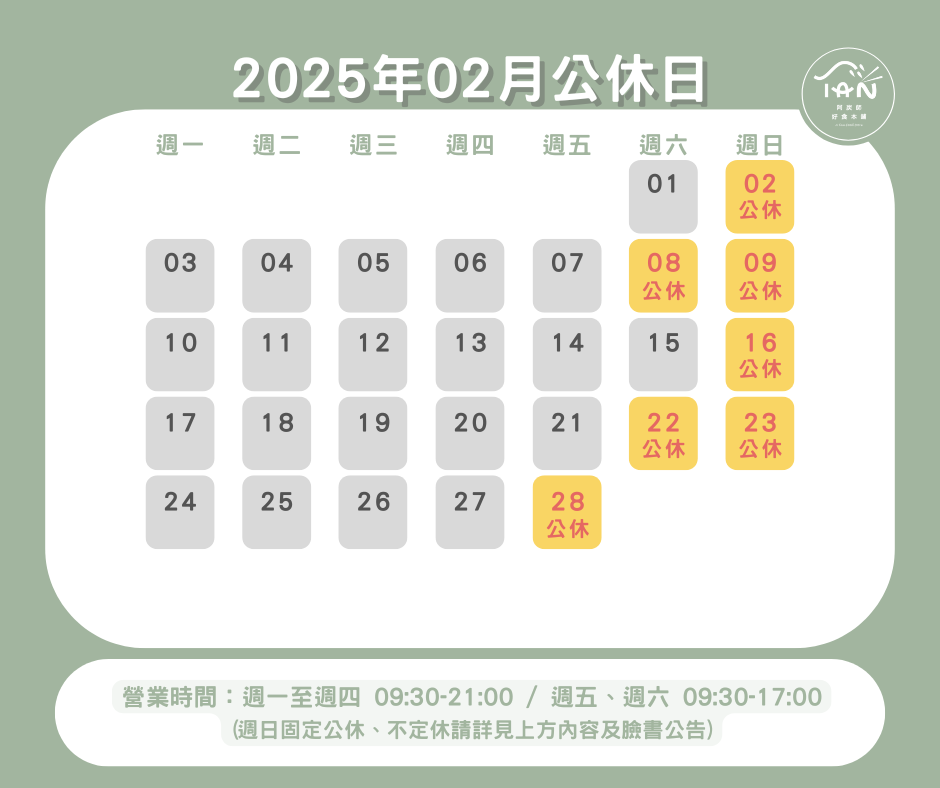 為了讓營業時間更容易被記得,店內營業時間於5/1起稍作調整!